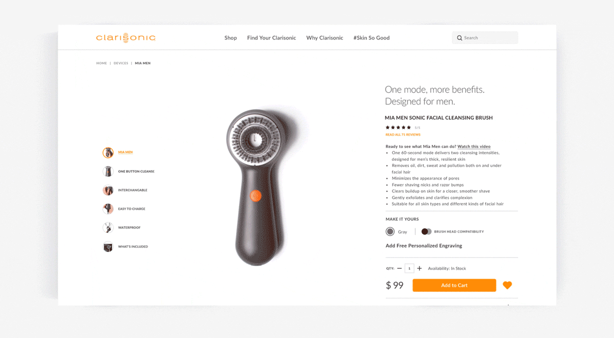 It was important to capture the essence of Mia Men, so I pulled elements from packaging and physical product – as well as balancing that with brand DNA tying it into the larger Clarisonic brand. This was used in development as well as the creation of email, social content, and digital media.